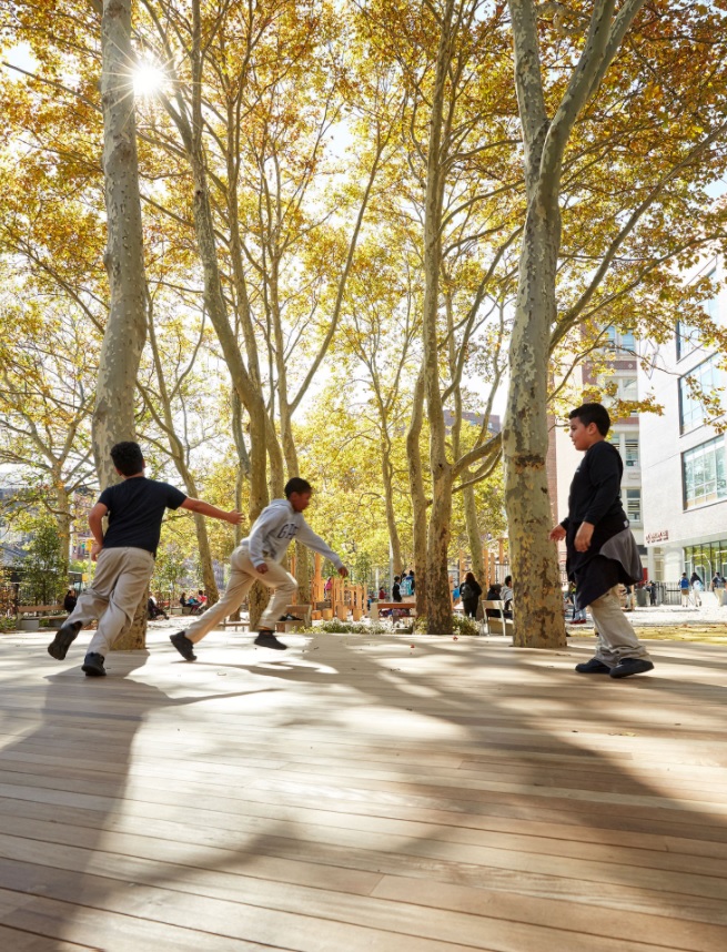 Stromy pomáhají v orientaci v prostoru. Svými korunami vymezují prostor a navádějí k parku.