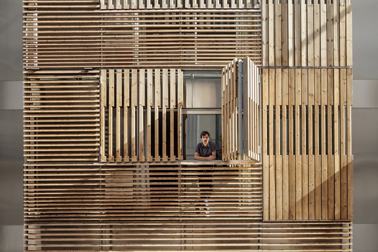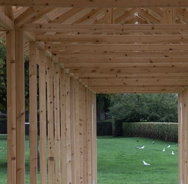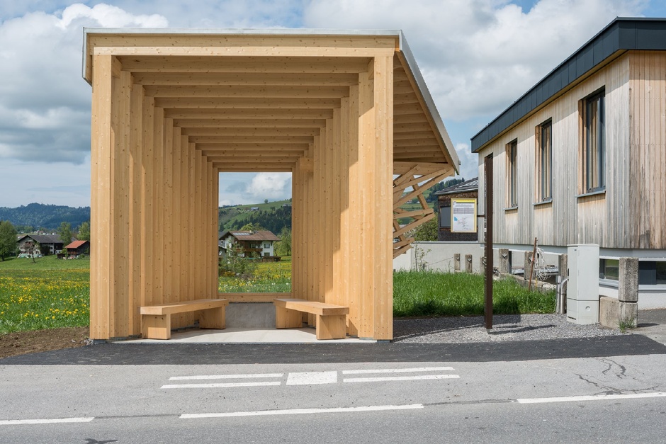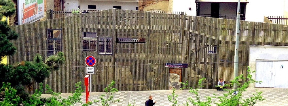 Dřevěná stěna ukončuje volný pozemek v sousedství fary a vytváří v proluce pevnou hranu návsi. Výška konstrukce dosahuje po výšku římsy sousední stavby.