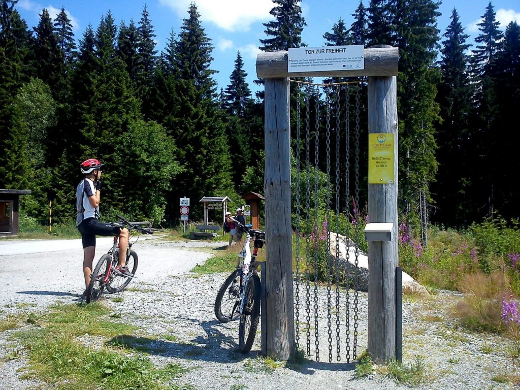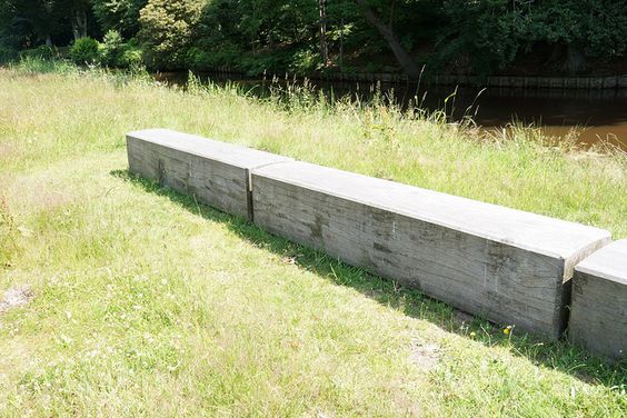Prvky z konstrukce bunkrů používáme v rámci naučné stezky. Stylizovaný zaměřovač je instalován na místech, odkud příchozího navádí k dalšímu bunkru.