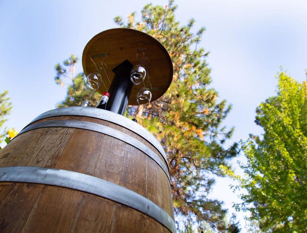 Bar je doplněn o výtah, který vínem zásobuje i horní platformu. Výhled si tak můžete vychutnat se sklenkou vína v ruce. Přístup na vyvýšenou platformu je samostatnými schody. Spodní část s provozem je uzavíratelná.