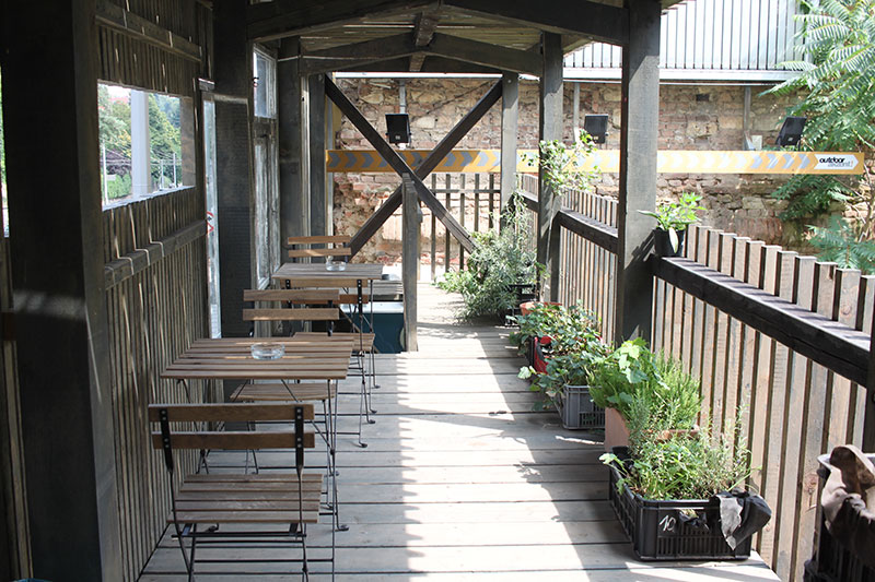 jednotlivé zahrady mají rozmanitou podobu. Průchody do nich a vzájemně mezi nimi jsou v místech oken či dveří dochovaných konstrukcí. Nádvoří by mohlo sloužit pro různé kulturní akce.